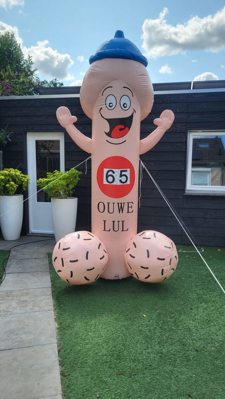 Wordt iemand 18, 35, 50, 65 of ergens daartussen of daarboven? Dan is dit dé perfecte verrassing! Zet deze hilarische 3 meter hoge pop in de tuin of op de oprit en de hele buurt weet: hier woont een jarige ouwe lul. Of het nu om een vriend gaat die zijn eerste grijze haar heeft gespot, een collega die zijn pensioen nadert, of je zwager die eindelijk de 40 aantikt — dit is de ultieme verrassing!