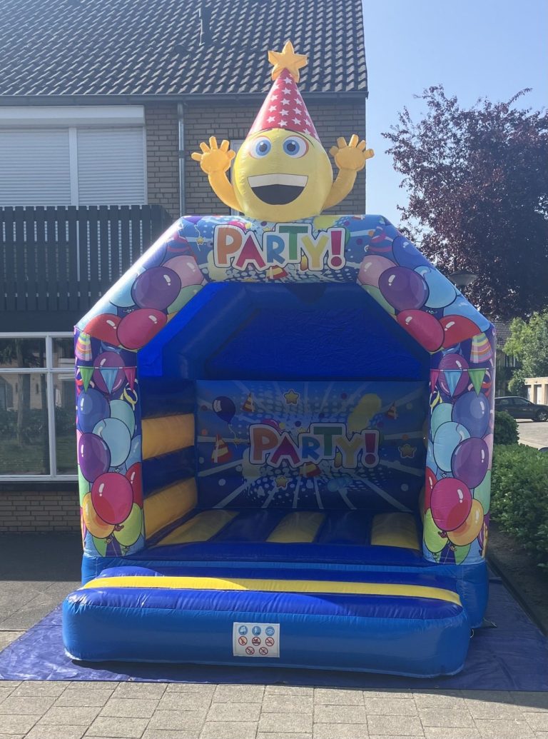 Wil je jouw kinderfeestje, schoolfeest of buurtbijeenkomst extra feestelijk maken? Kies dan voor het springkussen Party! Met zijn knallende kleuren en grote, vrolijke smiley bovenop brengt dit springkussen meteen een lach op ieders gezicht.