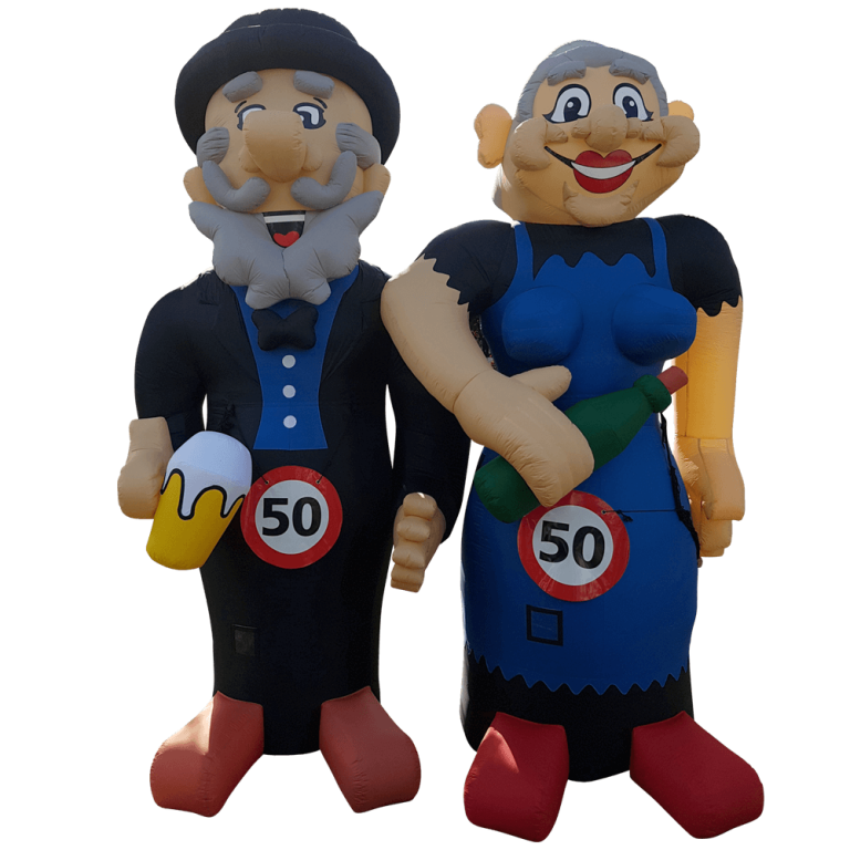 Wil je een jarige extra in het zonnetje zetten? Huur dan onze Sarah of Abraham opblaaspop van 3,2 meter hoog! Een echte blikvanger voor in de tuin of voor het huis.